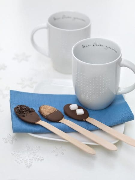 Ich könnt aber noch weiter gehen und die Tellerränder mit einer einfachen Tannenbaum-Schablone und Gewürzen oder Kakao noch spannender gestalten.