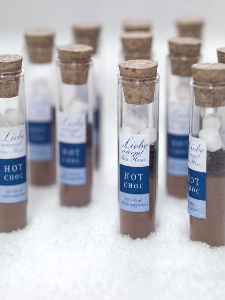 Anstatt Sekt könnt ihr selbst gemachten Glühwein, euer Signature-Punsch, Cider, heiße Schokolade oder feinen Tee an einer Schnee- oder Eisbar servieren. Das ist nicht nur ein absolutes Highlight, sondern wärmt eure Gäste von innen, während das Brautpaar nach der Trauung beglückwünscht wird.