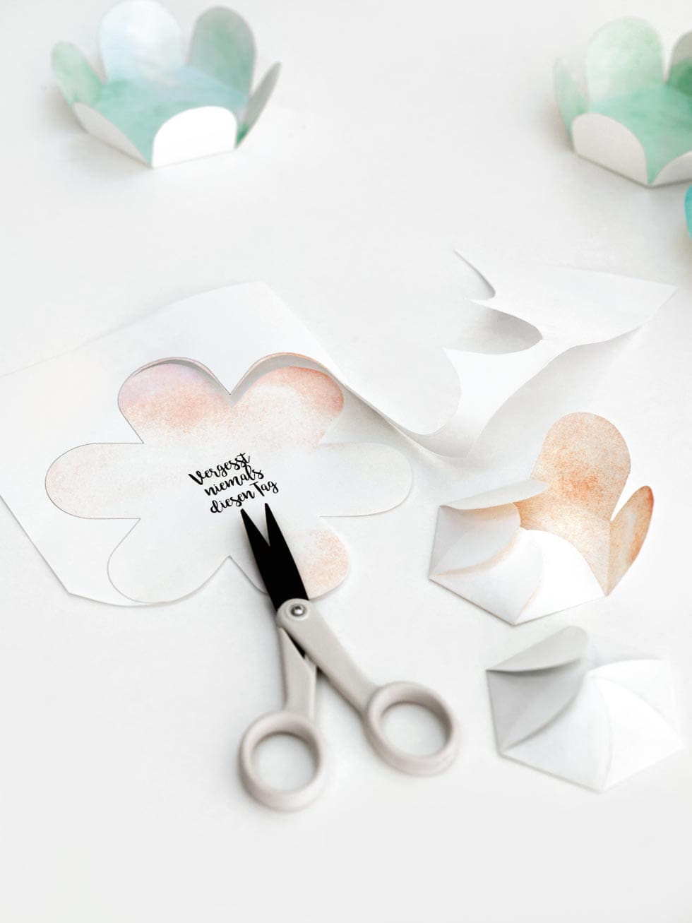 - Faltet die Blütenblätter nach dem Ausschneiden zur Mitte.