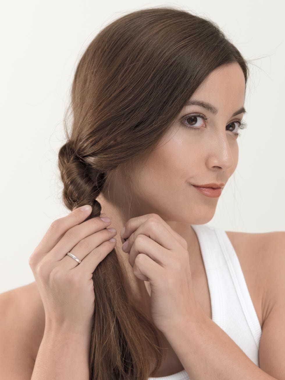 Sobald ihr mit euren Haaren einen Knoten machen könnt, lässt sich dieser Zopf an der Seite ganz einfach mit ein paar Handgriffen stylen.